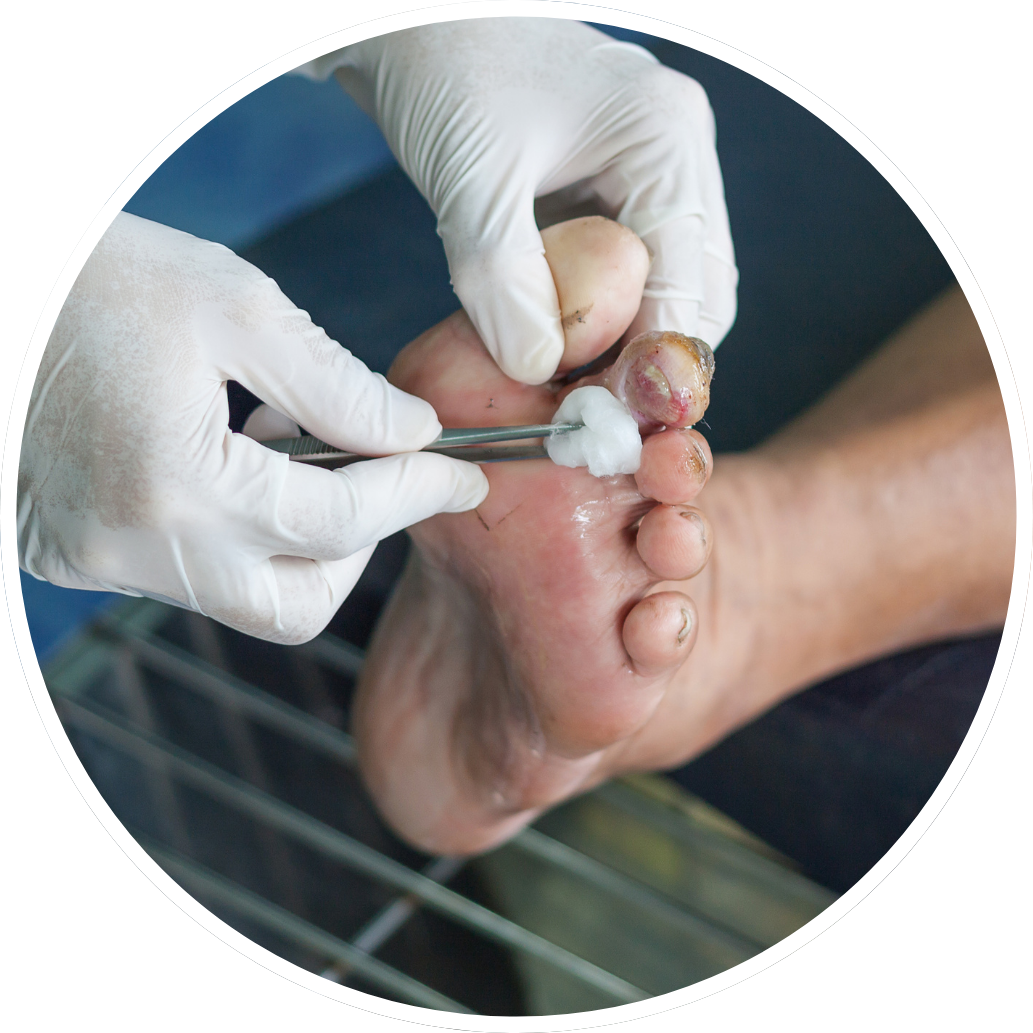 We begin with comprehensive foot assessments to monitor circulation, nerve sensitivity, and skin health – critical factors in preventing complications. If wounds or ulcers are present, our expert team provides targeted care to promote healing and prevent infection, using advanced techniques and a gentle touch.